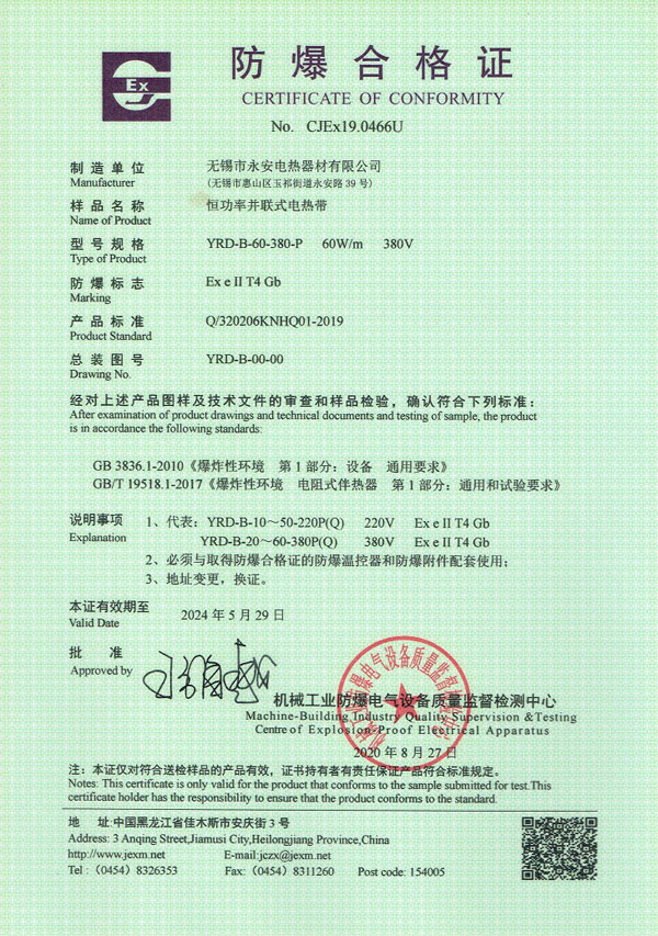 防爆证-自限温电热带